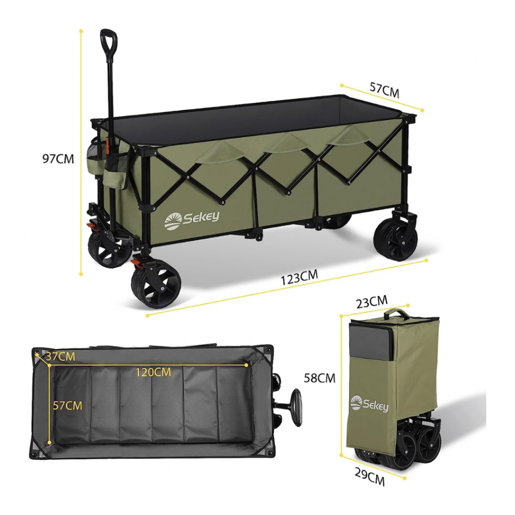 Sekey XXL Plus Bollerwagen Faltbar mit Bremsen 200L 150KG, Breite